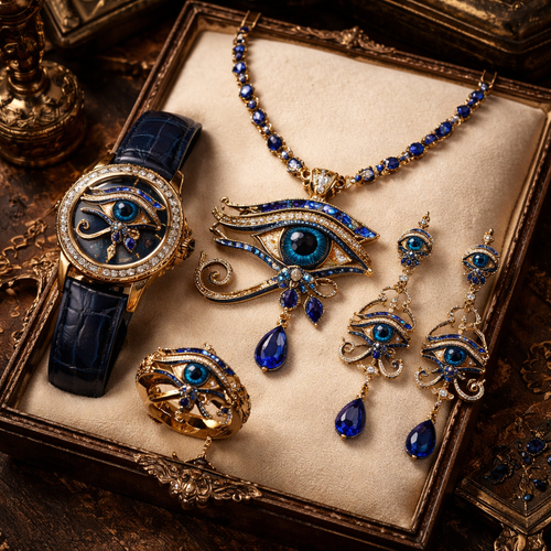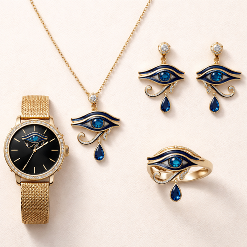 emirate eye of urus blue dark Egypt simple set earing watches neckles full set miniature