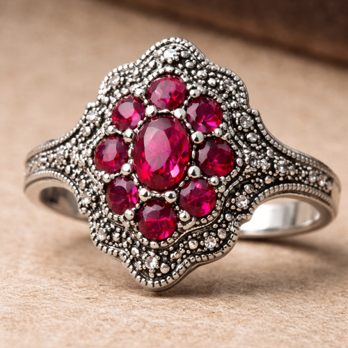 A vintage women's ring made of silver with ruby stones suitable for daily wear