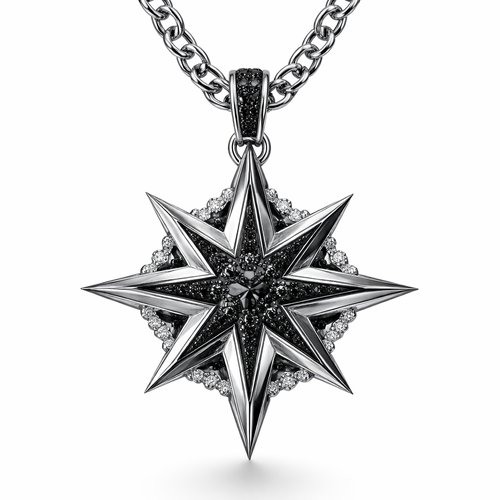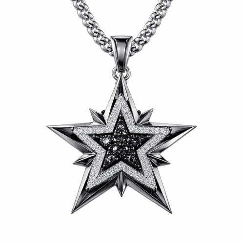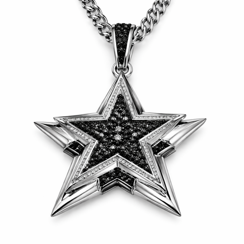 Unique modern edgy pendant with chain for men of Unique design of edges and bold shapes of nice unique star with black ...