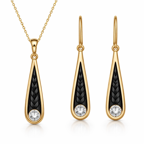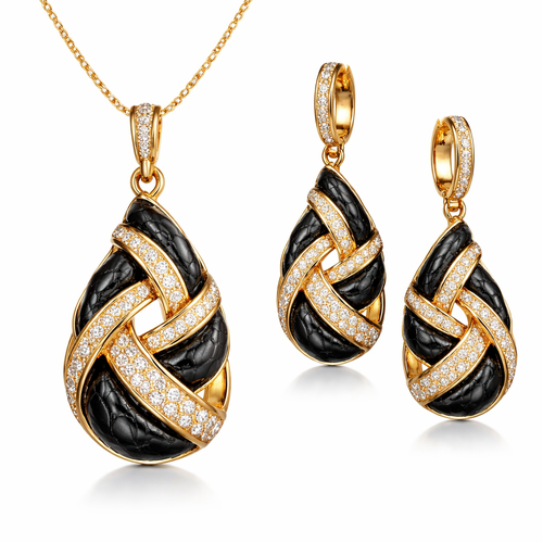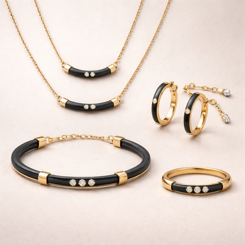 Simple jewelry ensemble with diamonds with leather design , in gold