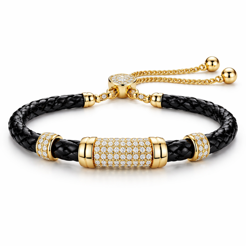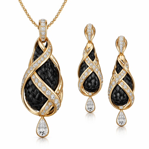 Create jewelry set for Brahmin with diamonds with leather design , in gold